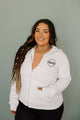 An incredibly soft and relaxed unisex full zip up hoodie, will quickly become a go-to essential. Features a relaxed fit, hood with white drawstrings, full zip closure and ribbed cuffs and waistband.